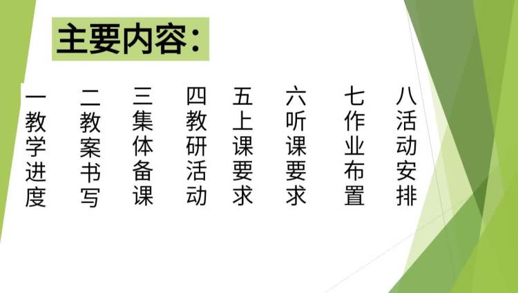 会议第一项,由11位教研组长汇报本学期教研组工作计划。
