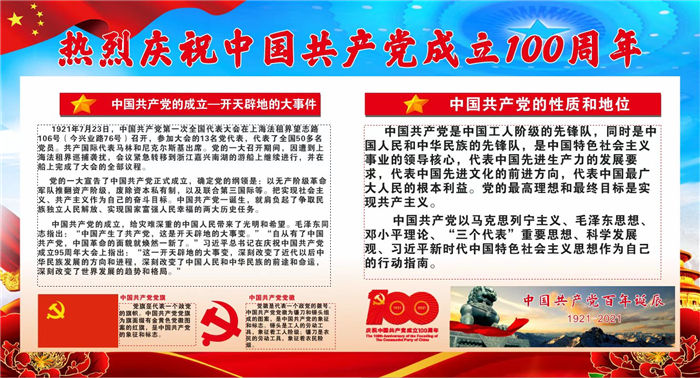 抚顺市第五中学庆祝建党100周年主题宣传展板